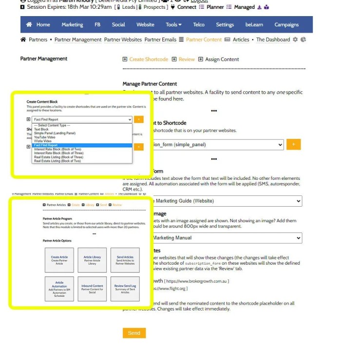 The new partner module allows you to create and modify dynamic blocks of content on partner websites, such as video, interest rate blocks, text, subscription panels, fact find report, and for those that are using the property module, property listings.
