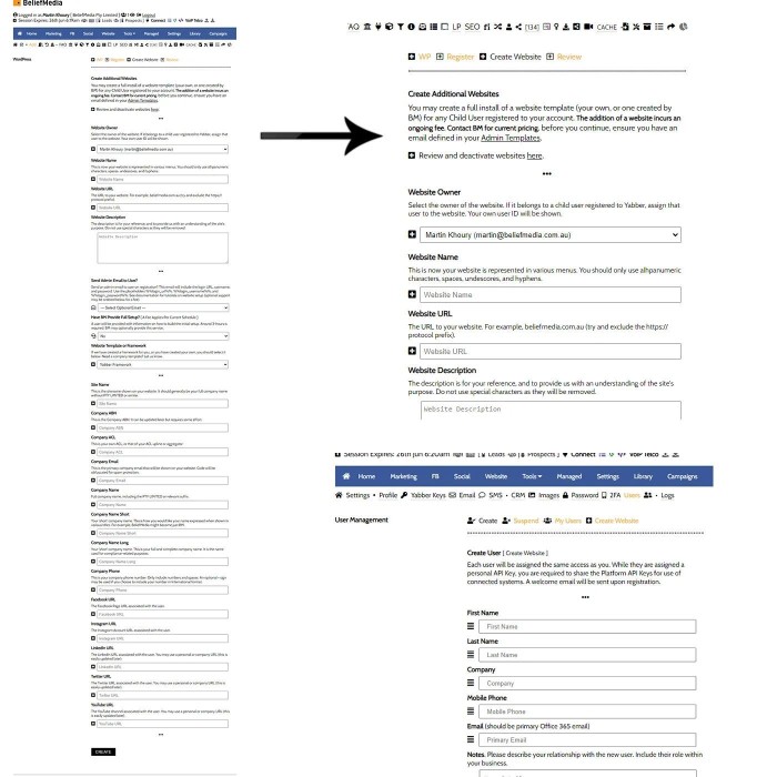 We've always had the option to add child users to an account, but we've recently added a facility that'll allow you to create a brand new website and assign it to your users at the click of a button. The website can be our own standard framework, or you may use your own template. Yabber may then be used to fully customise.