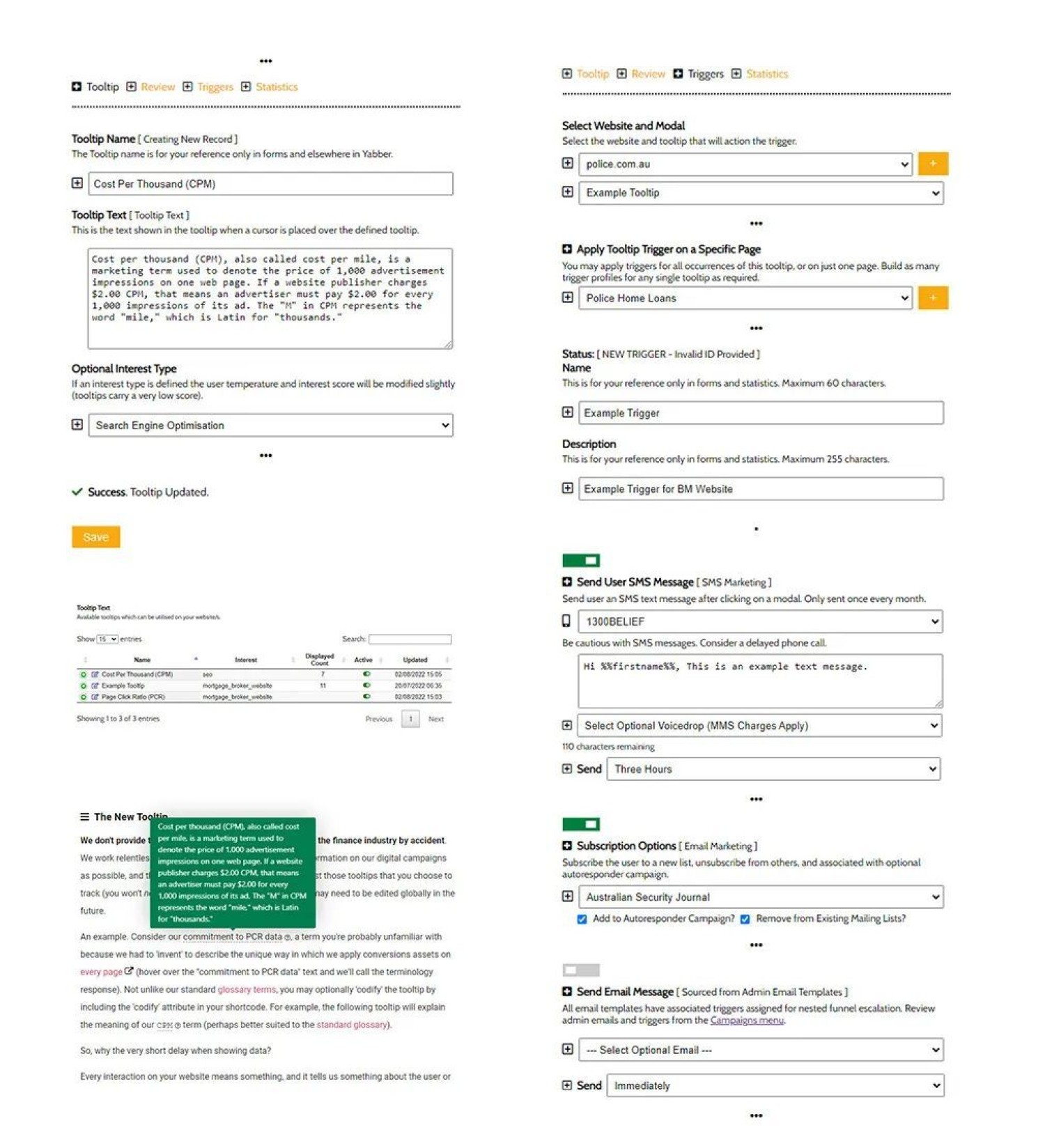 Interaction with a tooltip feeds our conditional engine with more information on a user, provides BeNet with an understanding of a user so we're able to course-correct their funnel journey, and we can even apply SMS and email triggers. It's a seriously advanced system for *just* basic website tooltips.