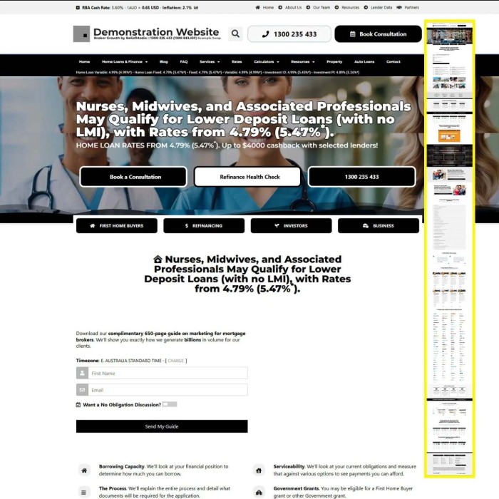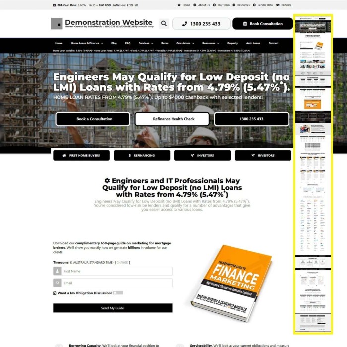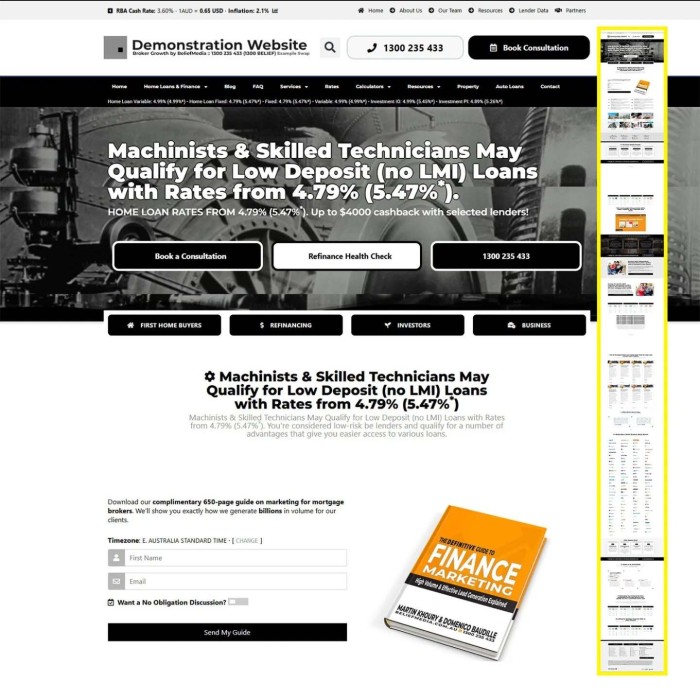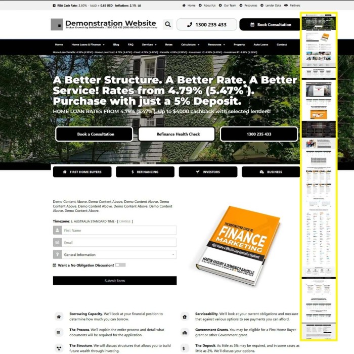 First, your website is conditional, so it responds to user interest, resolved borrowing objective, and behaviour, so we're able to swap a front page (or one of hundreds of other assets) over for another. Relevance and attention are a key funnel commodity, and a dynamic and personalised web experience is part of a funnel-centric digital two-way conversation. The pathway a user takes on your website should be preordained - also known as 'Choice Architecture'.