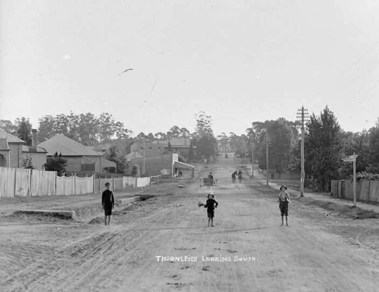 Pennant Hills Road at Thornleigh, c1915. Can you imagine the current road safe enough for kids to play cricket?