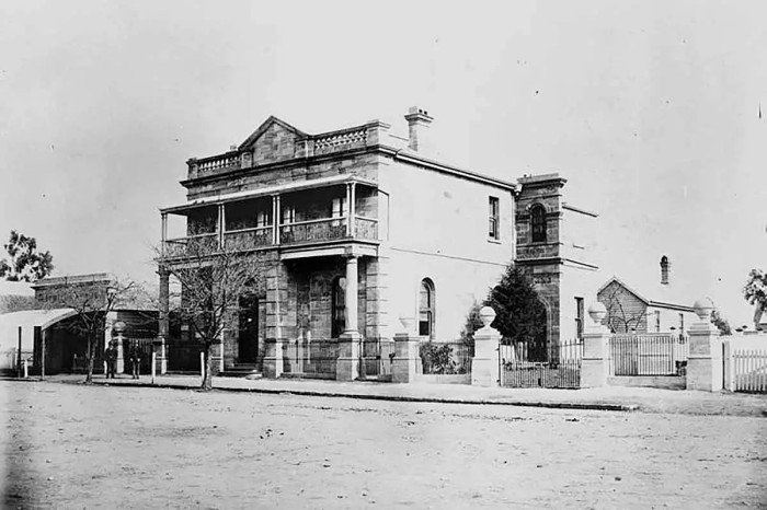 The Queensland National Bank, launched by a group of Queensland pastorialist and merchants, opened its branch in Warwick on 7th September, 1875. The bank proved very popular with the farming community. This photograph shows the bank next to the Warwick Argus newspaper office. Warwick was the first town on the Darling Downs, established in 1849 on the banks of the Condamine River. The rich grazing land around the area supports horse and cattle studs, fine wool and grain. Warwick is situated 158km south west of Brisbane on the Cunningham Highway.