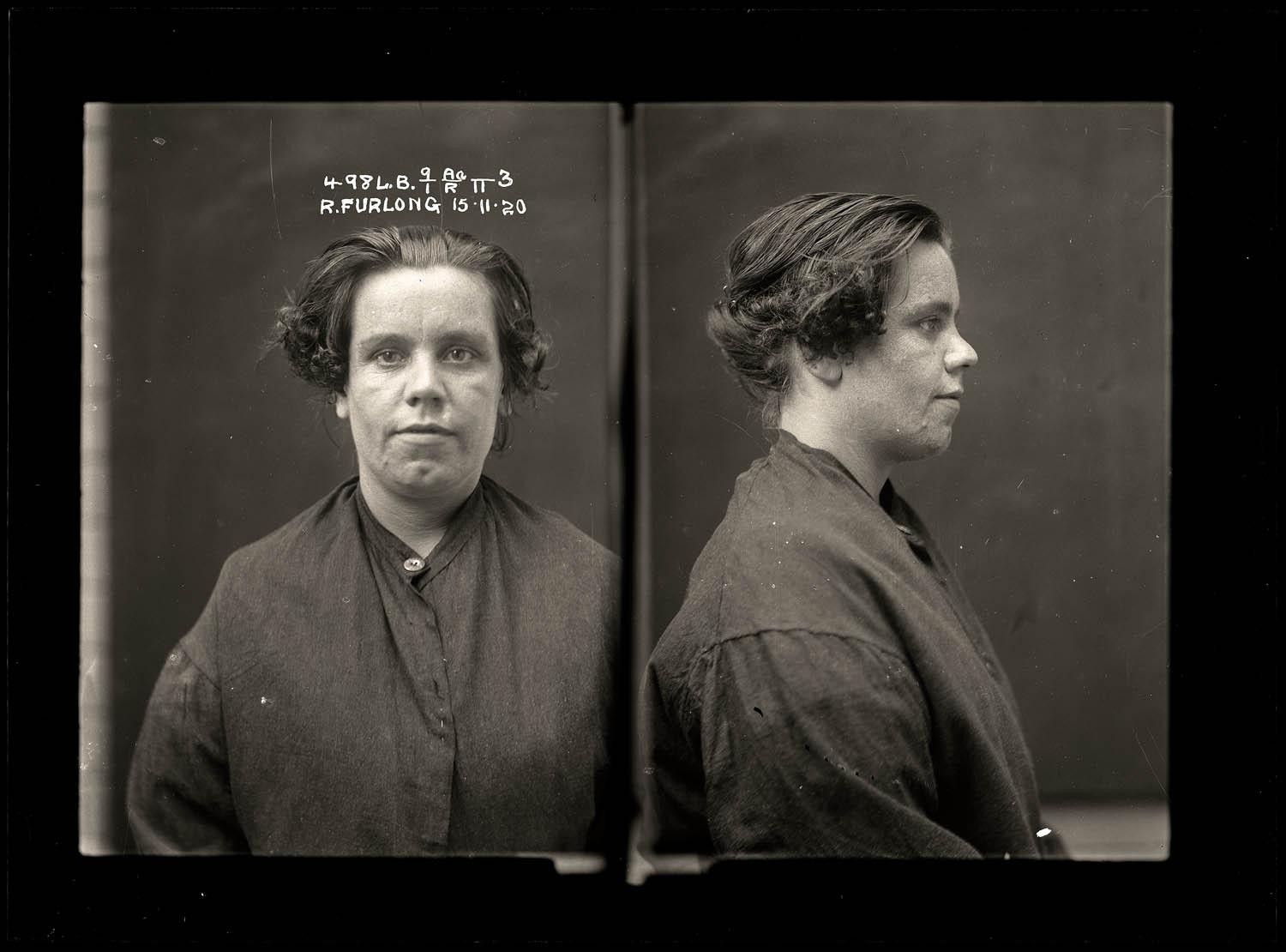 Titled "Ruby Furlong, criminal record number498LB, 15 November 1920. State Reformatory for Women, Long Bay, NSW."