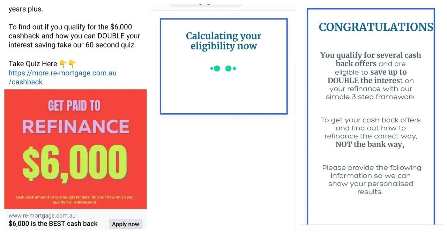 More of the same. An illegal baiting operation. This mob has the balls to fake a 'loading' screen before they return a non-compliant and fake 'You Qualify' message (messaging of any kind in the finance industry that is clearly and knowingly fake is illegal).