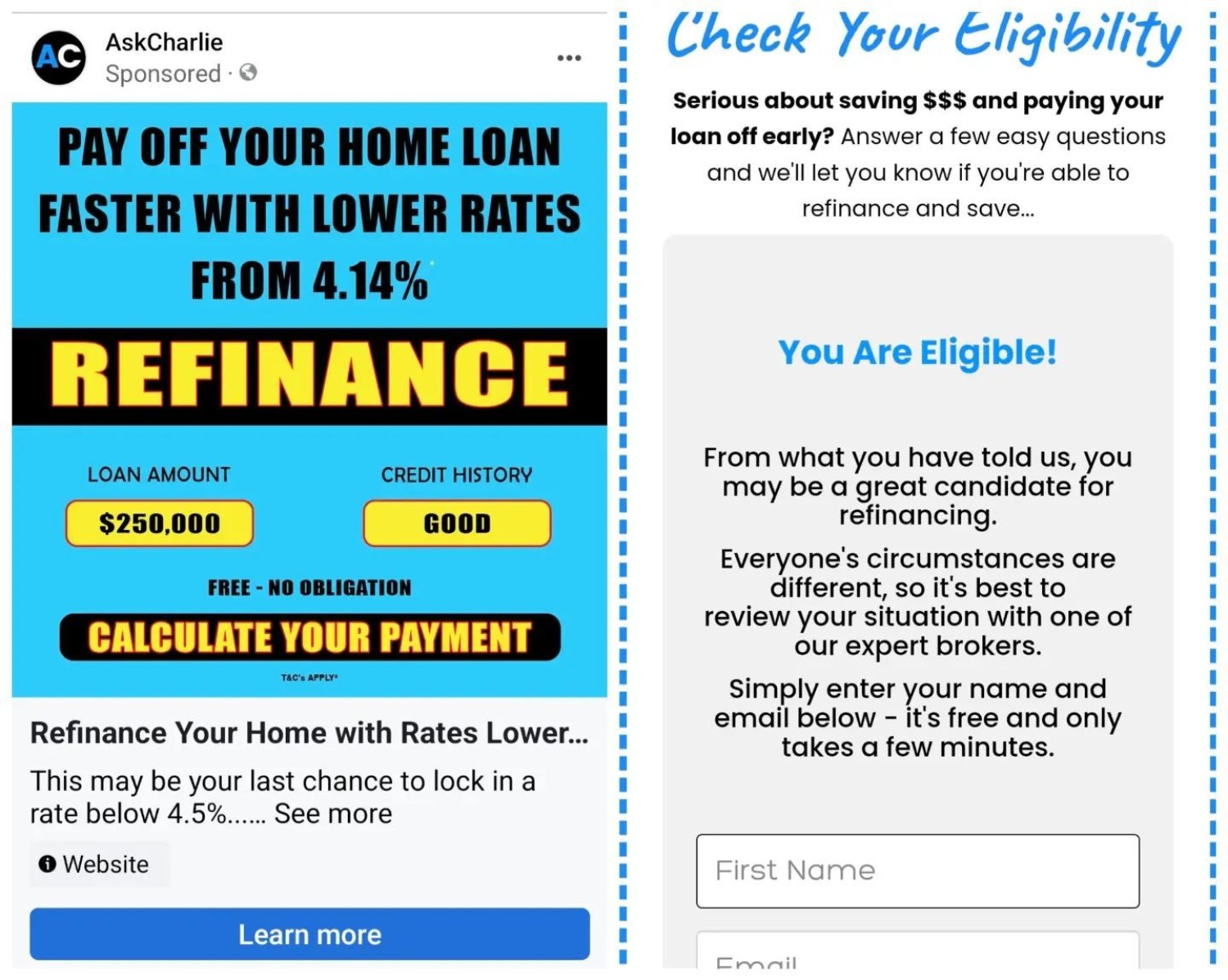 Unsupported rates, no comparison, no disclaimer, false statements, and worst of all, regardless of values provided in the quiz, we're told that we qualify. The law exists for a reason: to protect consumers.