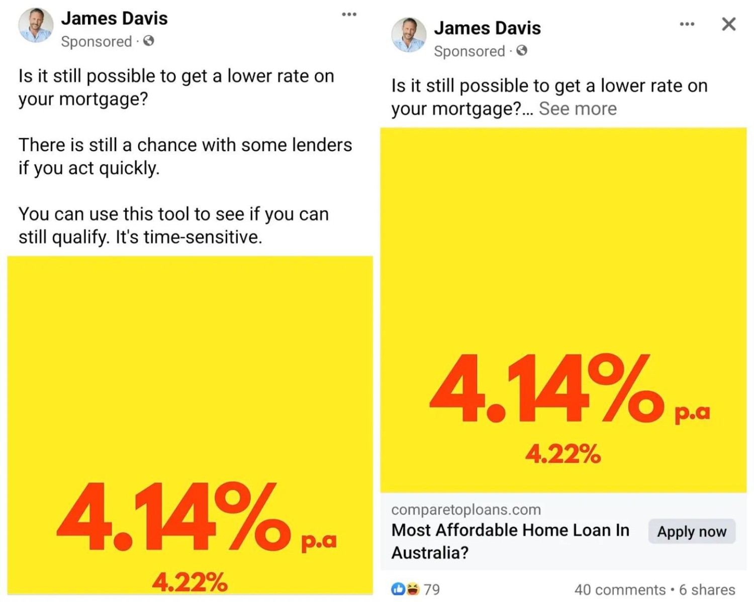 An advertised comparison rate must be identified as a comparison rate and the comparison rate must not be less prominent in an advertisement than any interest rate (s164, National Credit Code). One example provided: a comparison rate is smaller in size or faded in colour when compared to the interest rate.
