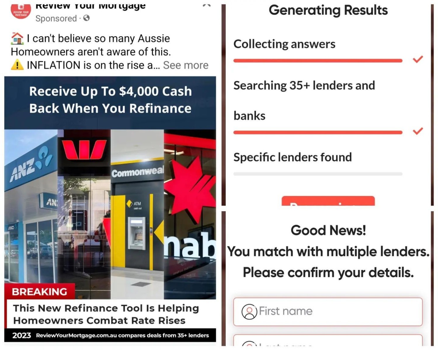 One of the most offensive and non-compliant elements in any customer journey is that of baiting - usually at the tail end of questions the consumer believes will contribute to their 'qualification'. In this case, the leadgen shonks deepen their deception by way of a :loading' screen that suggests they're checking results (of course, they are not checking anything).