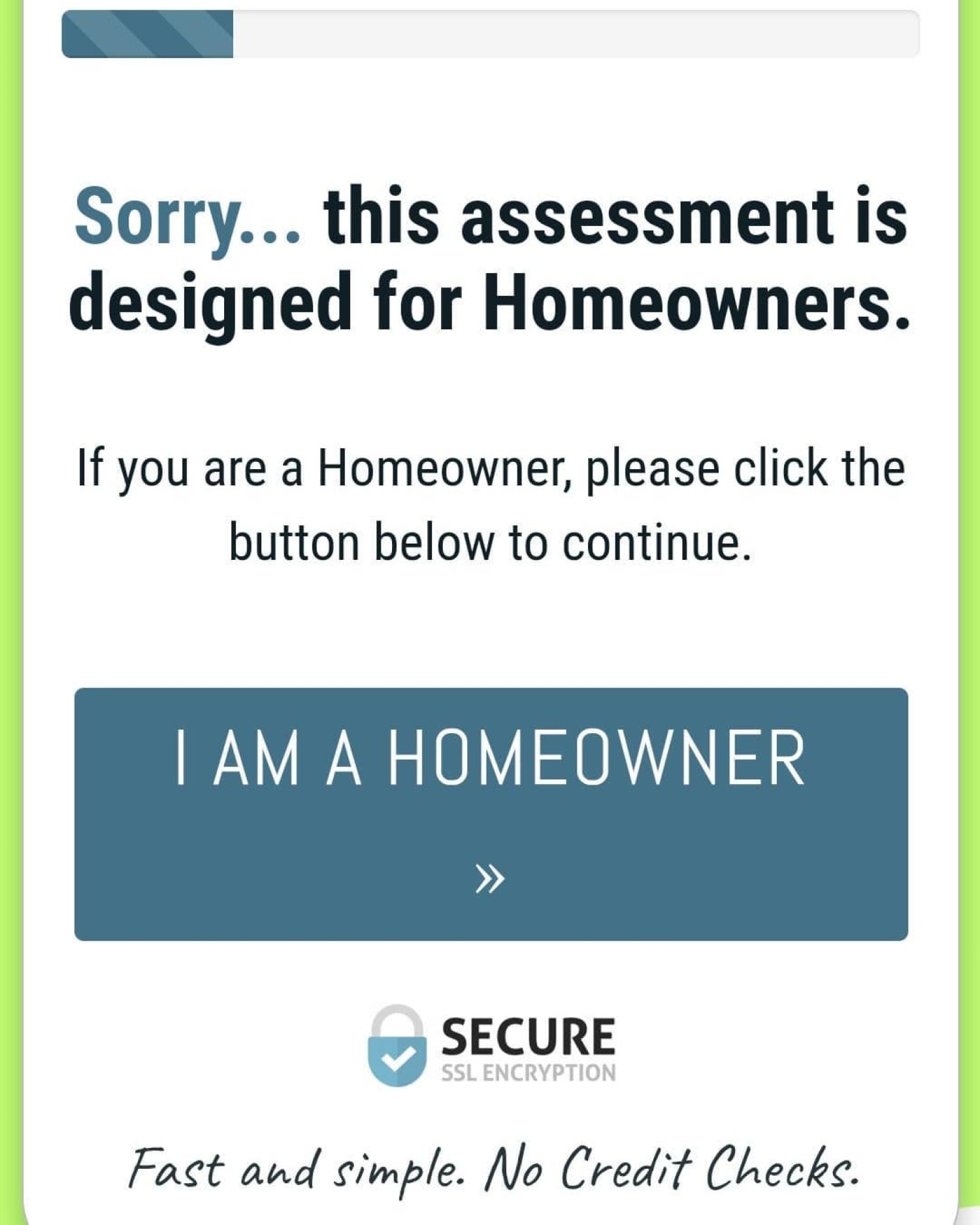 A home loan client lands on your ad, fullows it to a landing page, and is then turned away because they're not a 'Home Owner`. What about first home buyers, rentvesters, or investors? What it they're looking for alternate finance?