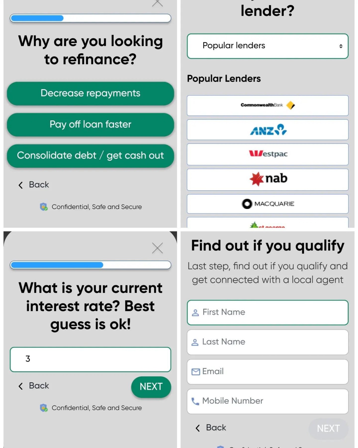 Their 'quiz' includes more questions than I cared to count - probably about 10, with each question doing nothing to resolve to an actual result (why ask for an existing bank? Why ask *any* question if no results are returned back to the user?). Regardless of our answers we were always told we qualified (for what is unknown).