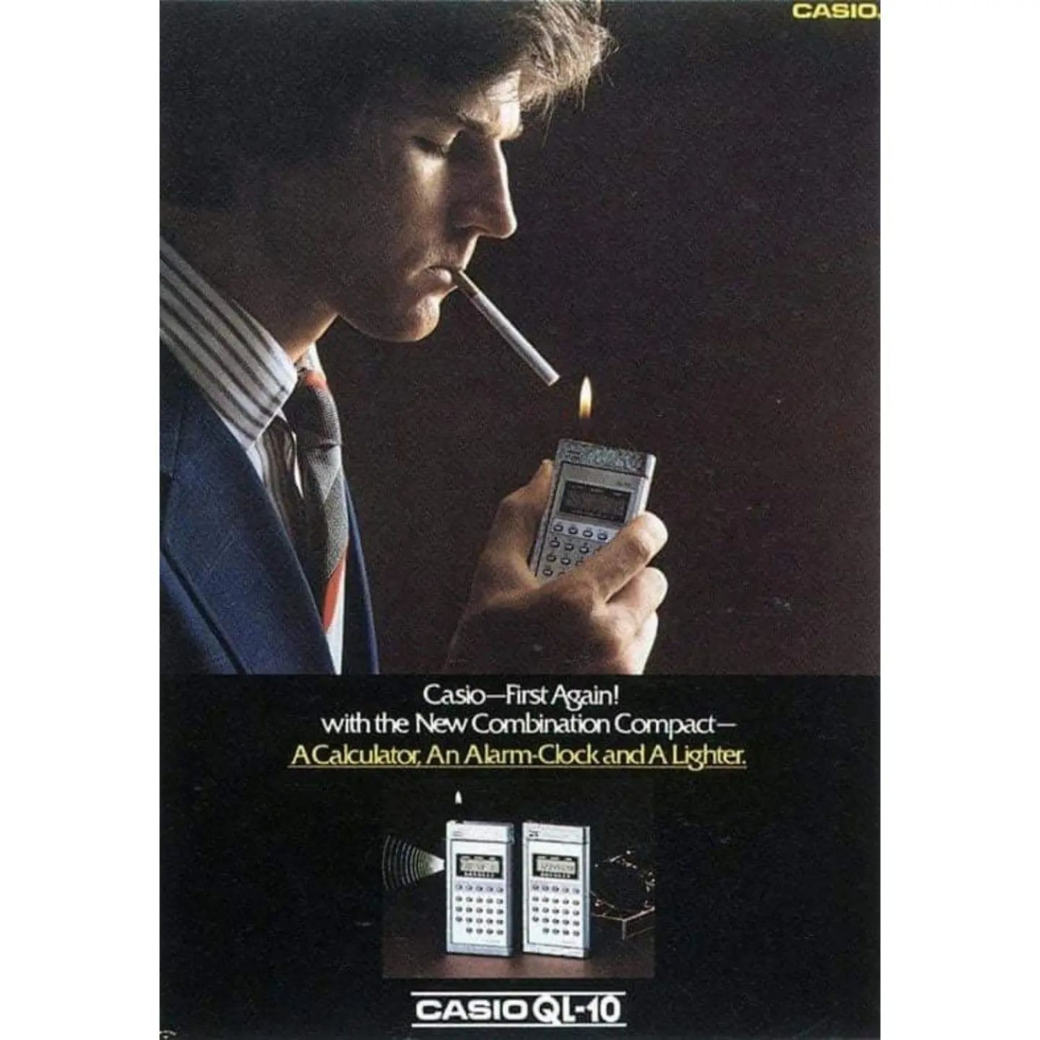 Casio QL-10: the Calculator Lighter, 1981. The Casio QL-10, an arithmetic calculator with 8 digits precision and algebraic logic. 5 functions, 24 keys, LCD display. Manufactured in Japan. Finally, something your smartphone can't do.