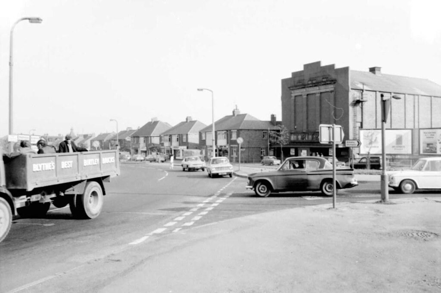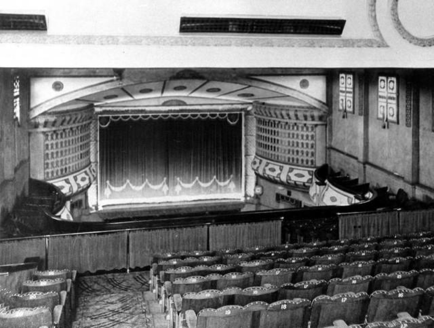 The primary image of just the theatre (with the tram tracks) was taken in 1942. The photograph with the lads riding in the back of the truck was taken in 1962 (after the rail was removed), and the image with the billboard was taken c1958(after a safety fence was installed). The time of the interior shot is unknown, but it was likely around 1955.