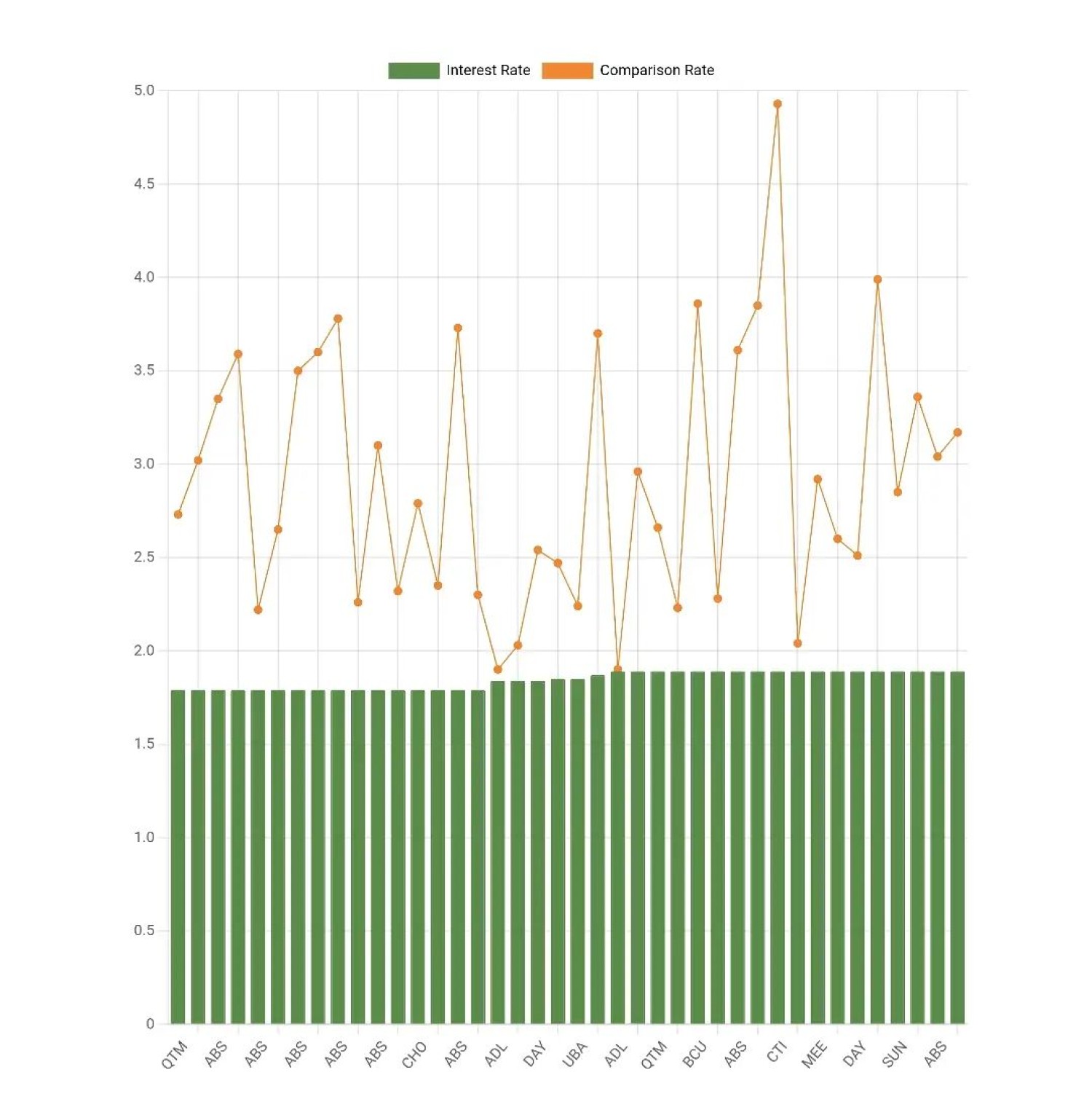 You'll note that the published rates might appear fairly consistent and 'flat' as this is a figure the banks might often use to appeal to customers and compete against each other, but it doesn't necessarily represent the true rate provided by the product (as illustrated by the accompanying comparison rate line in orange).