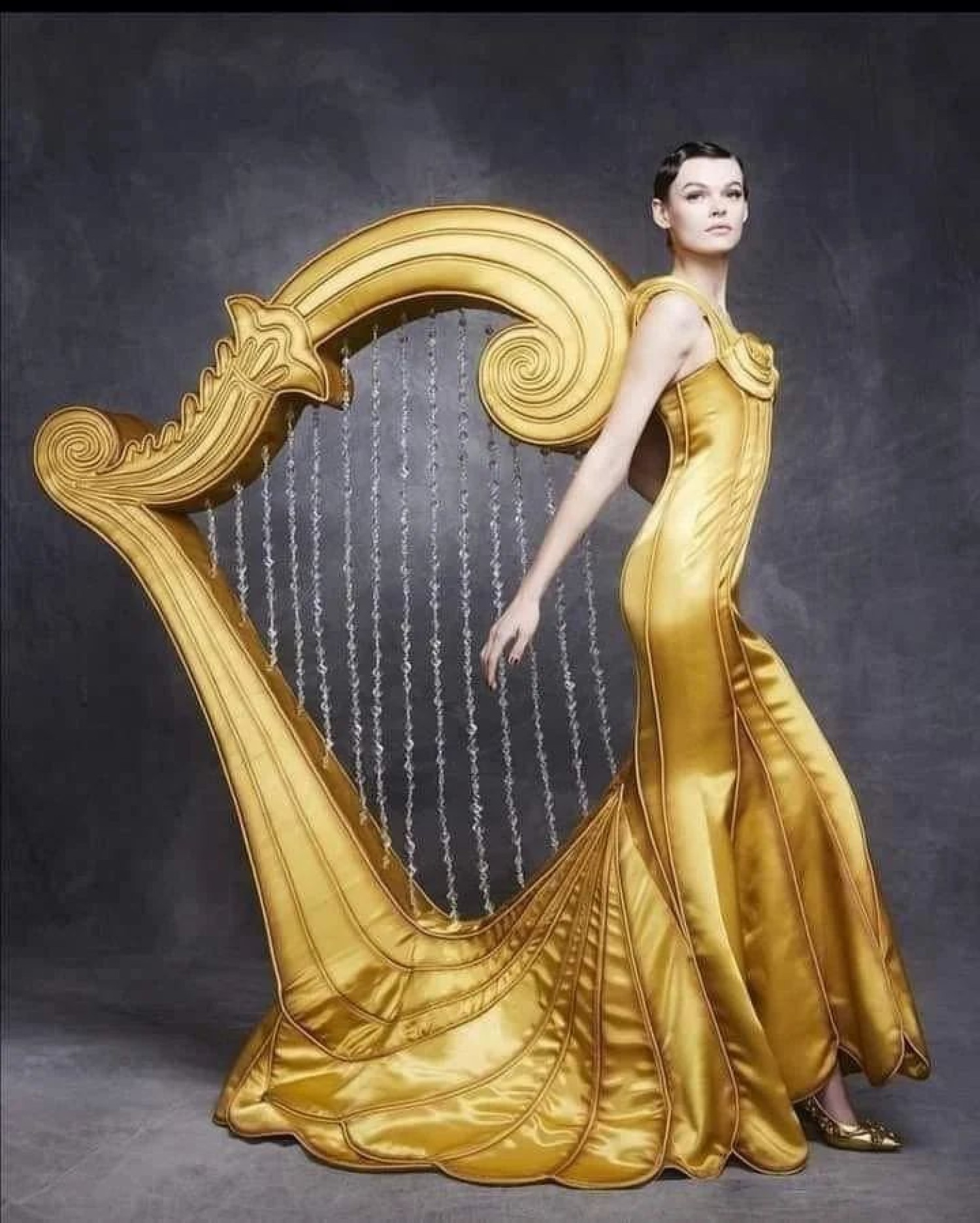 Would you harp around in a dress like this?