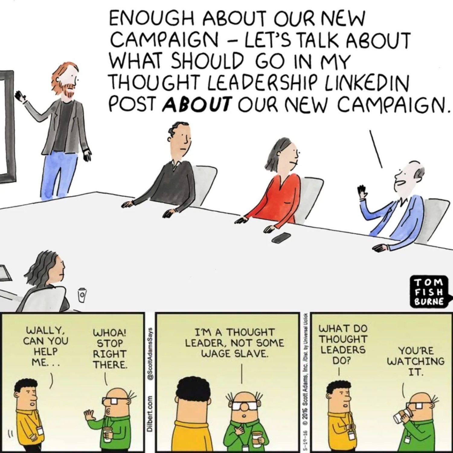 An I the only one that gets a little frustrated with the ubiquitous use of the term 'Thought Leader'? Everyone has great ideas... but I believe demonstrated innovation is the only real indication of a though taking shape.