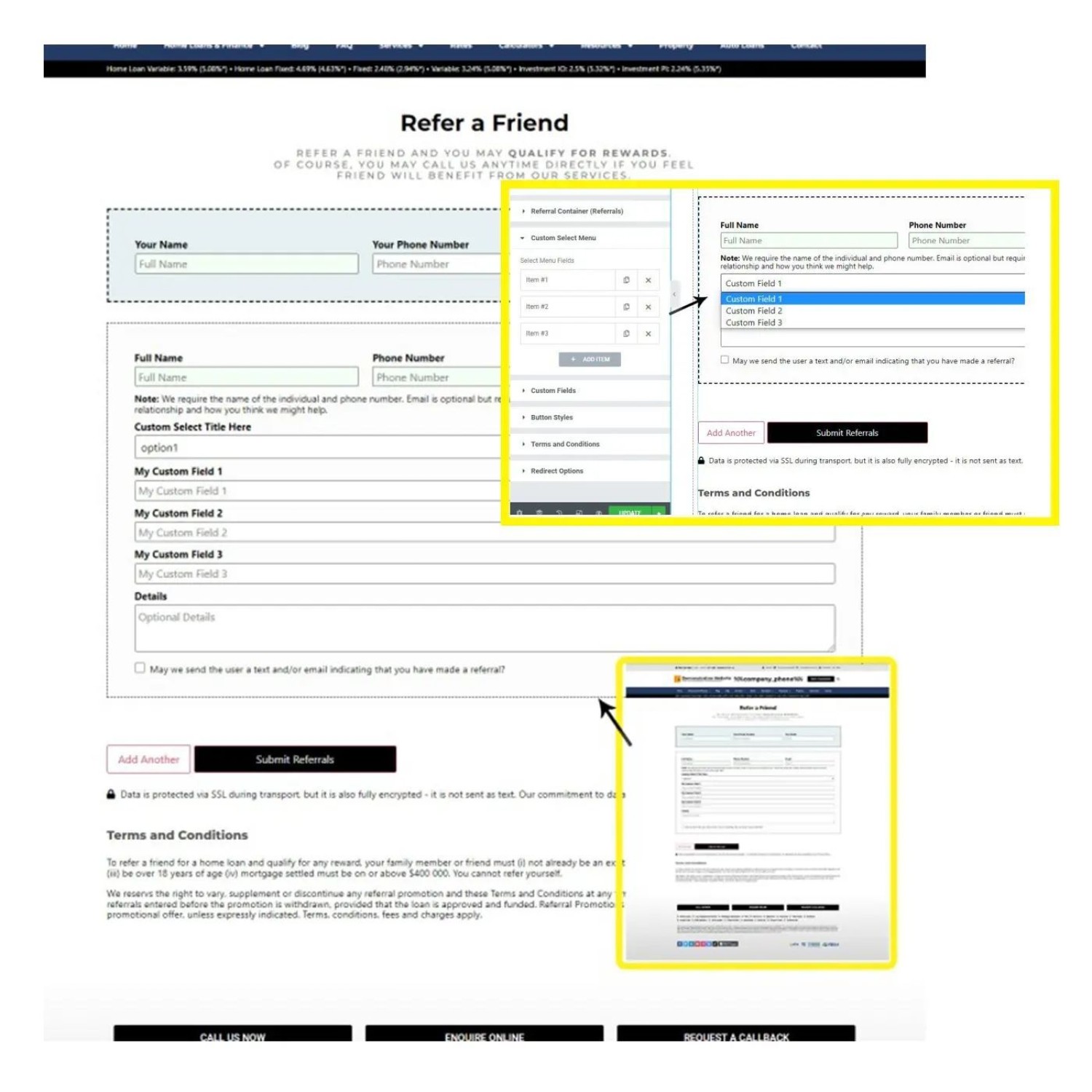 By default, or website form will show basic fields, and it'll only render a single referral option. You may, however, add more referrals via the 'Add Another' option, and you may add your own custom form fields.