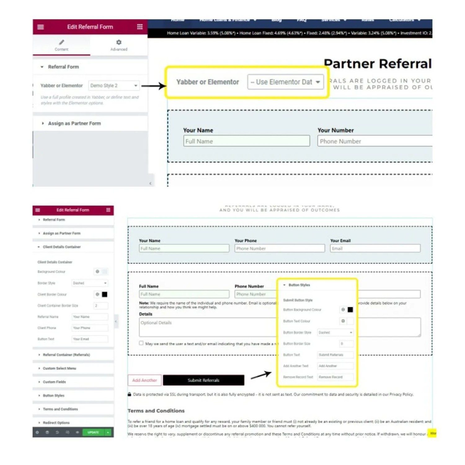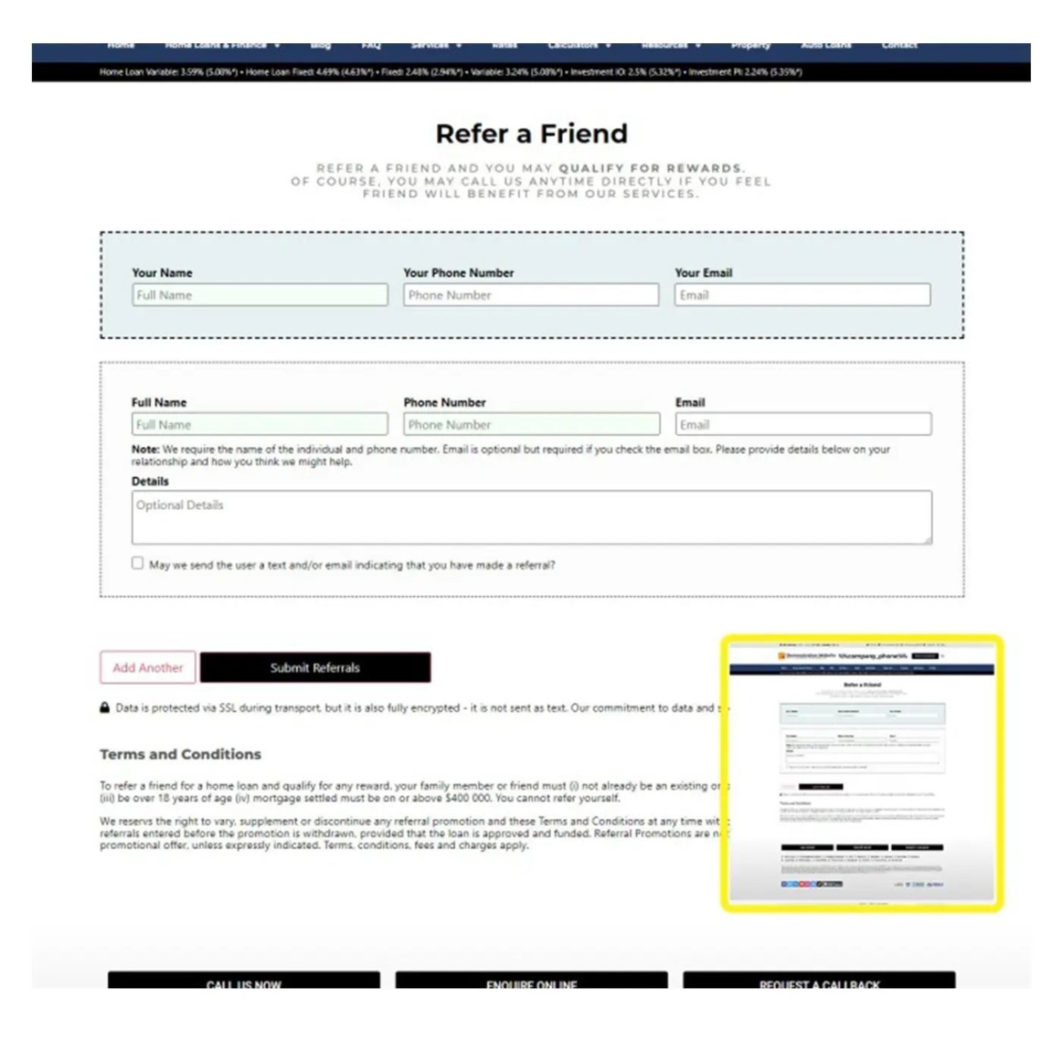 The form is 'shipped' by default (obviously) as a website tool, and it's backed by Yabber automation, such as emails to those referred, text messaging, and broker notifications. It'll add those referred to a list (and optional email program).