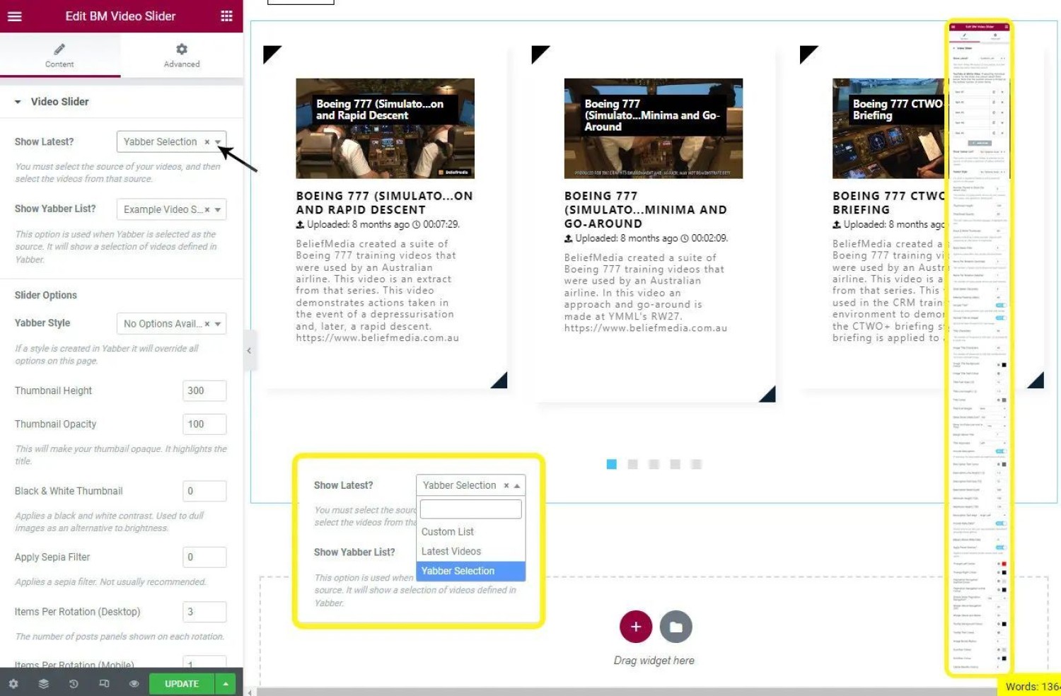 Note to clients: We've updated the relatively new Video Slider to include custom playlists created in Yabber (the same system is used to create 'Related Posts' panels). The facility to include YT Playlists into the slider is forthcoming.
