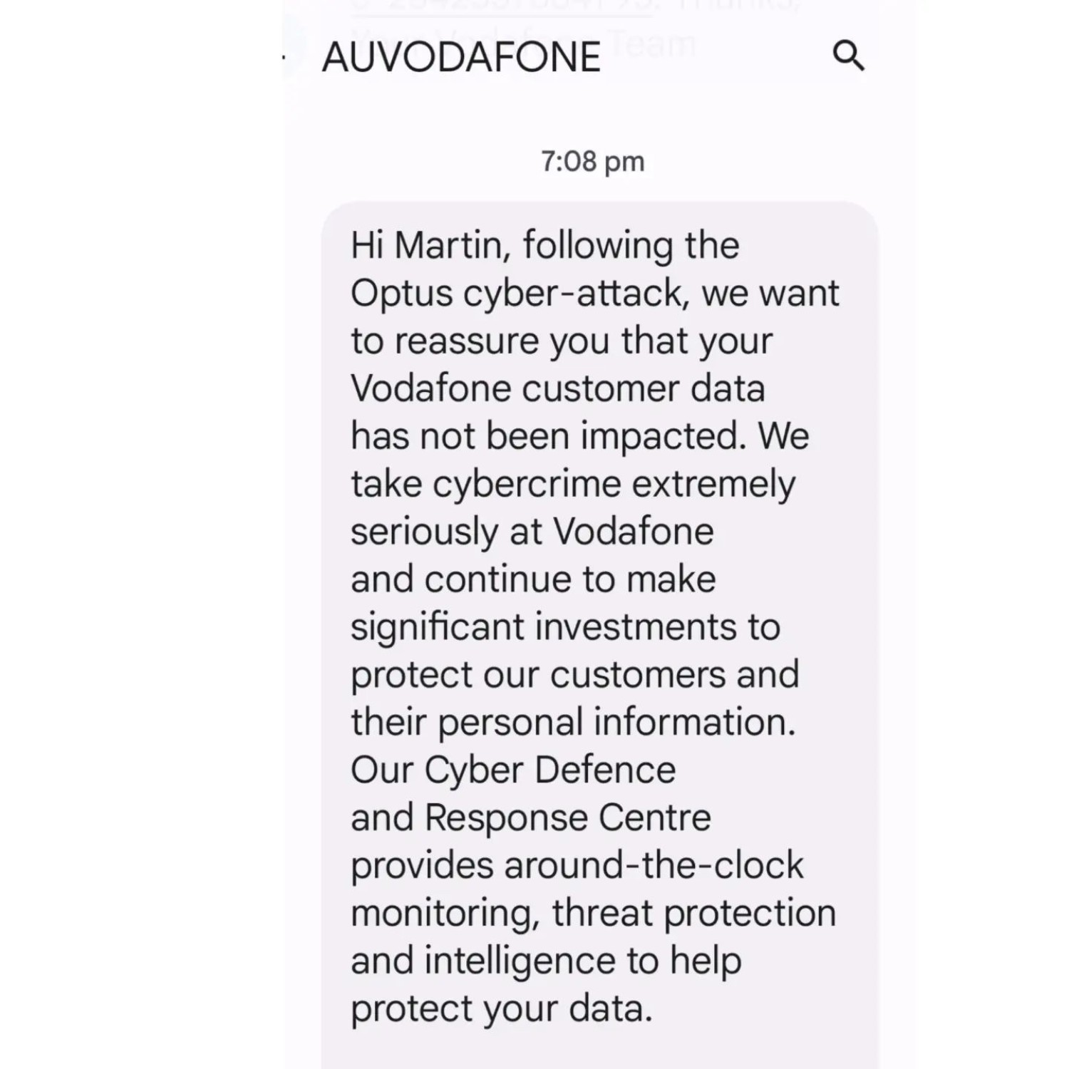 "We haven't been hacked yet and our service still sucks". Lots of love, Vodafone.
