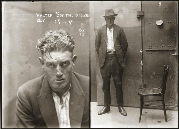 Special Photograph no. 1357. Walter Smith is listed in the NSW Police Gazette, 24 December 1924, as 'charged with breaking and entering the dwelling-house of Edward Mulligan and stealing blinds &c value 20 pounds (part recovered)', andwith 'stealing clothing, value 26 pounds (recovered) in the dwelling house of Ernest Leslie Mortimer.' Sentenced to 6 months hard labour.