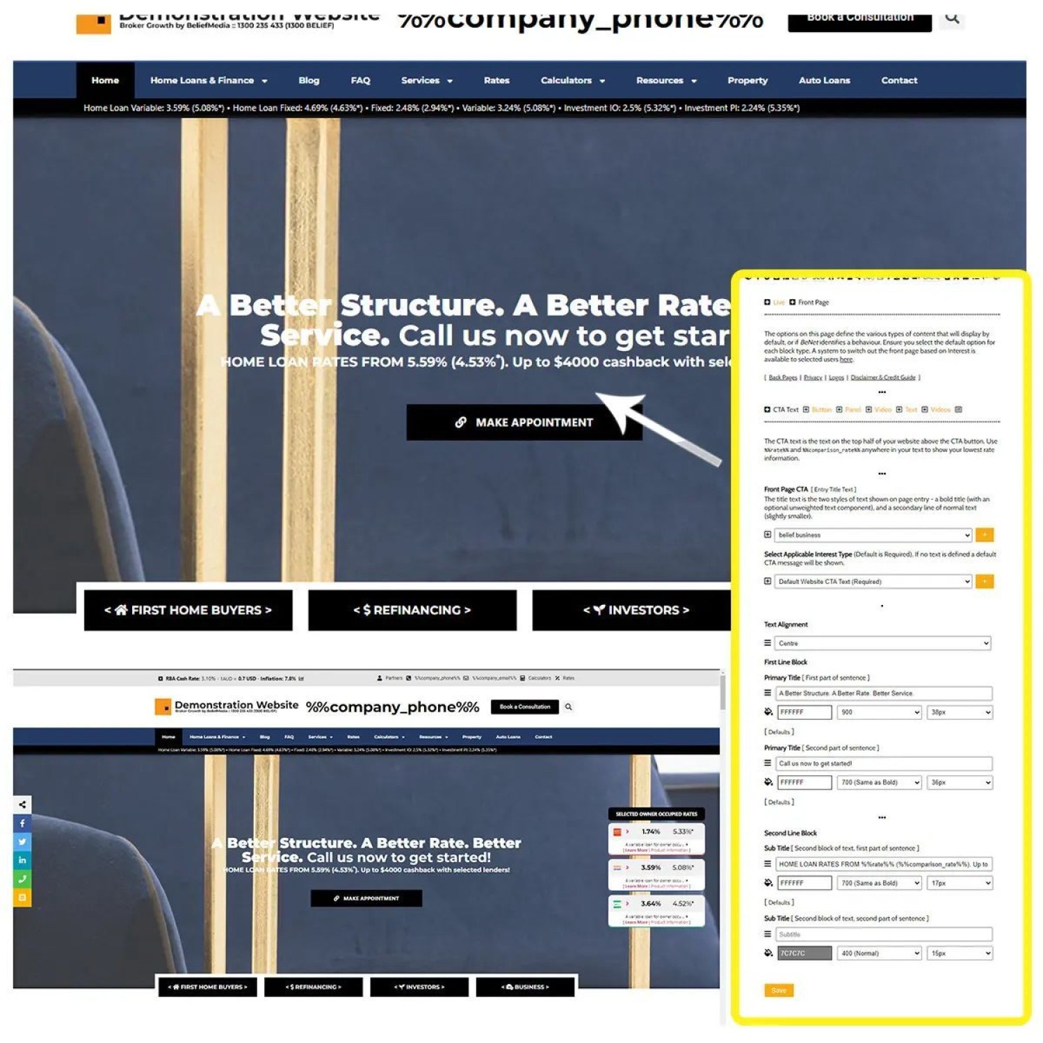 Note to clients. As you're aware, a bunch of your website's front page blocks are defined in Yabber, and a different message or asset is assigned to each, with appropriate content rendering to each user on the basis of a resolved borrowing objective. Earlier today we applied the first of a few minor updates to these features, with the first being the primary CTA block (or the big block of text a user is exposed to when they enter your website).