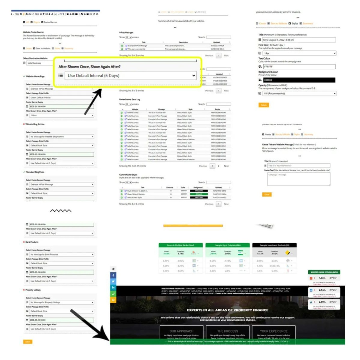A note to clients. We've made a minor update to the 'Footer Banner' feature that allows you to select how long your website should wait before showing the same message again (highlighted in the image). This 'show again after' interval replaces the default 3-days that previously applied.