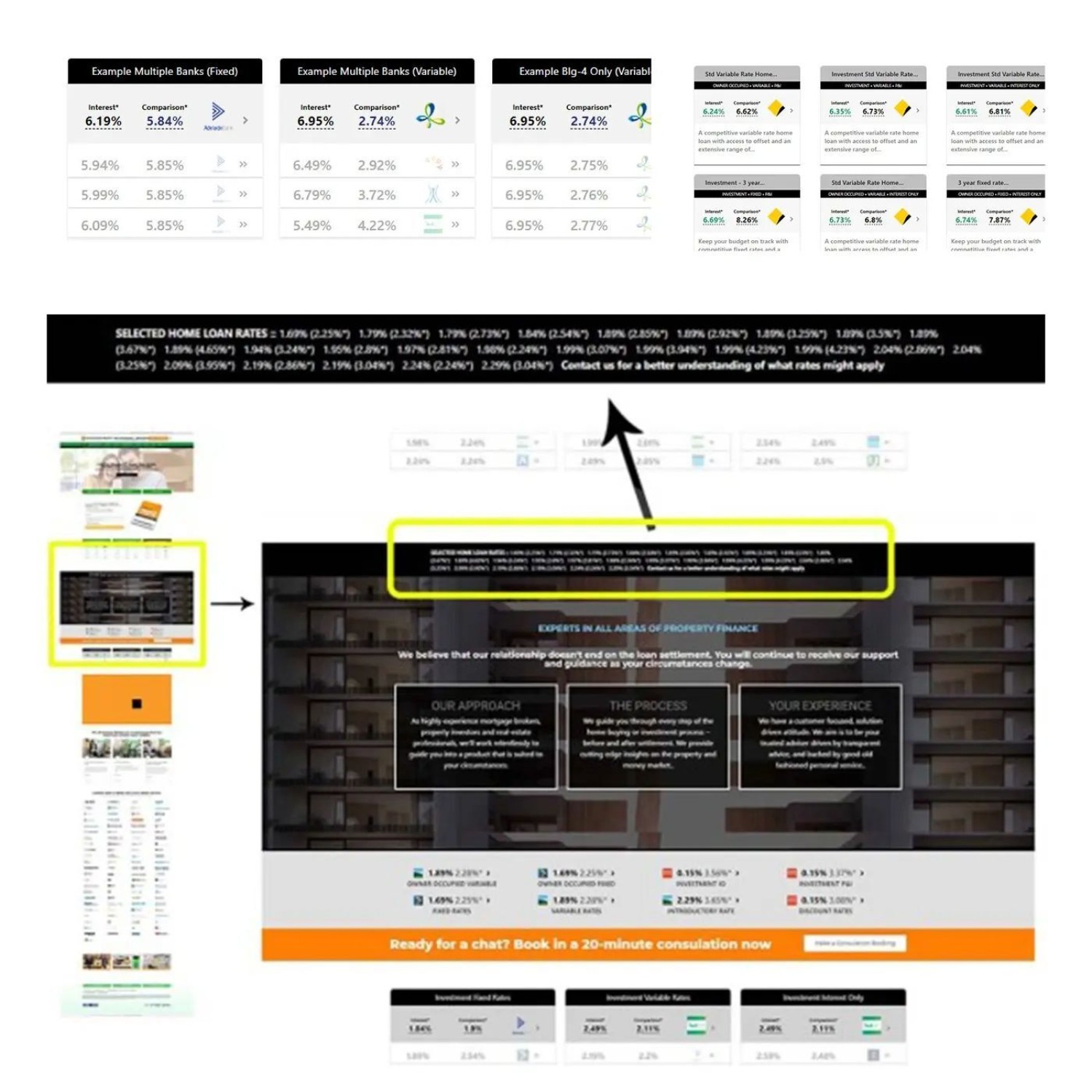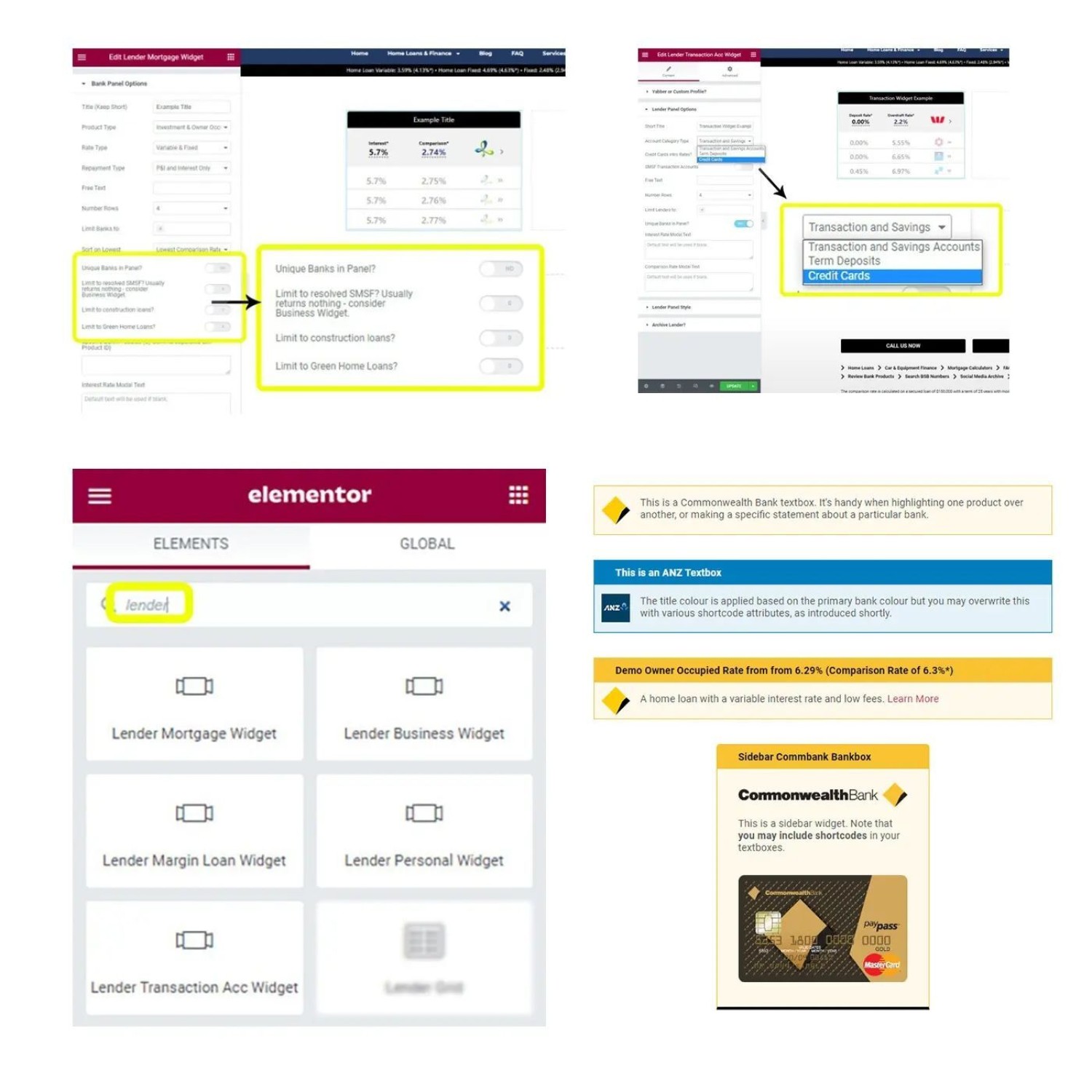 Lots of lender options apply, and full control over lenders, styles, and data, is maintained in Yabber. Drag-and-drop Elementor plugin blocks provides you with facilities to build your own experience, and the Lender (and Comparison) API is available to any client.