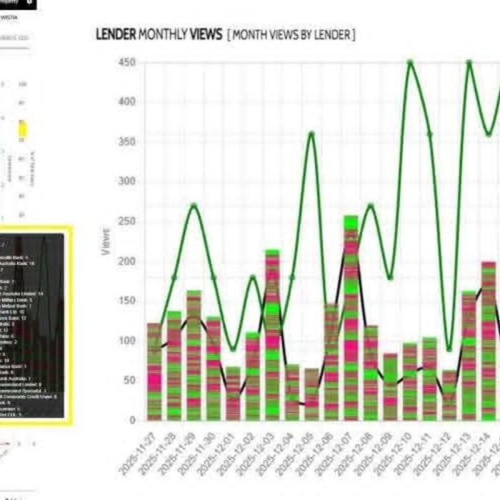 From a performance point of view, I've attached some stats from a broker getting good results. The graph shows only lender product pages (stacked by lender). It also shows the lever views measured against all pages views, and conversion numbers (as line graphs).