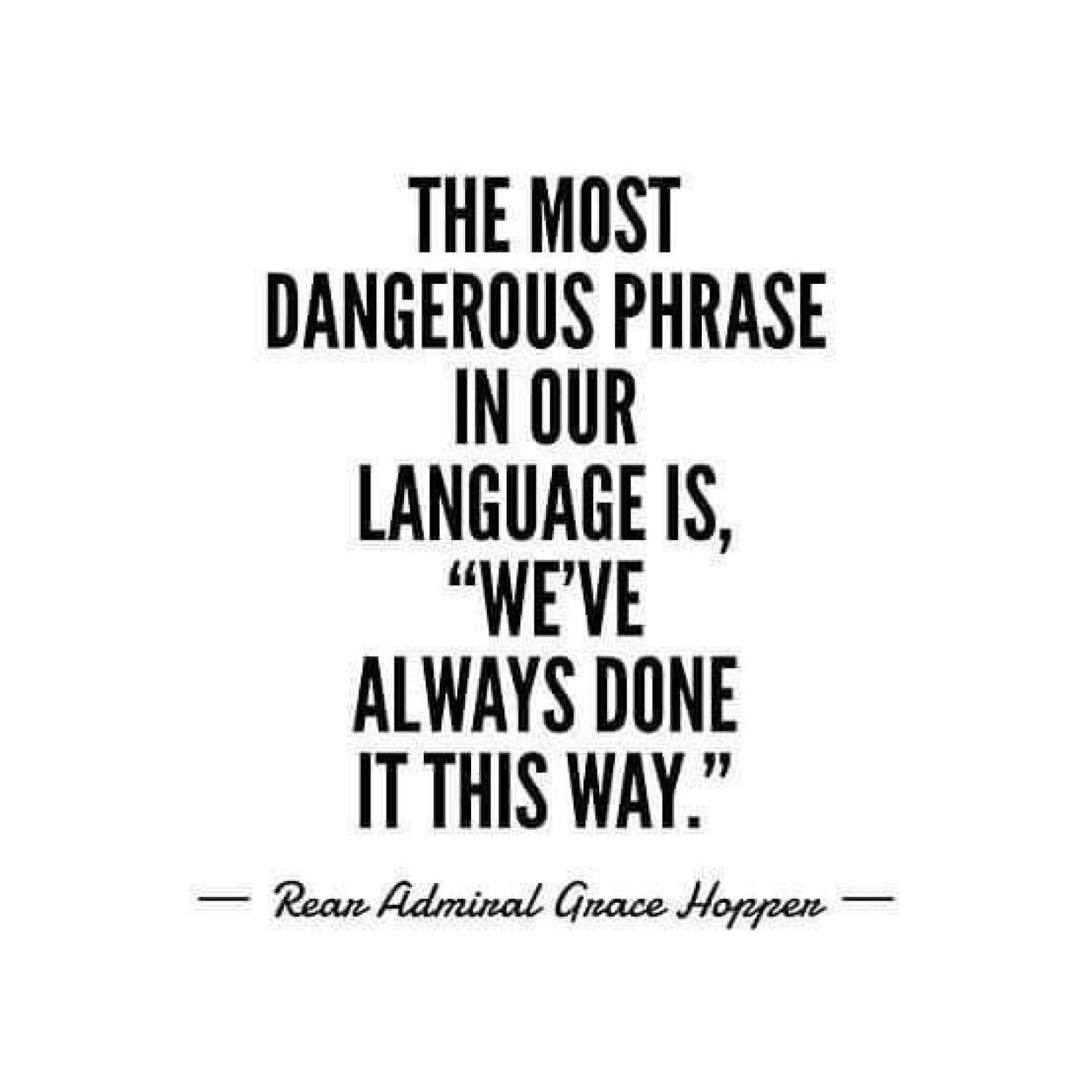 As a Naval officer it’s likely that Hopper’s quote was motivated in part by the frustrations of working within a military bureaucracy resistant to any change. But as a programmer and Naval strategist she understood that information wasn’t of use unless it was shared, turned into intelligence or knowledge, and then further developed from best practice into better practice.
