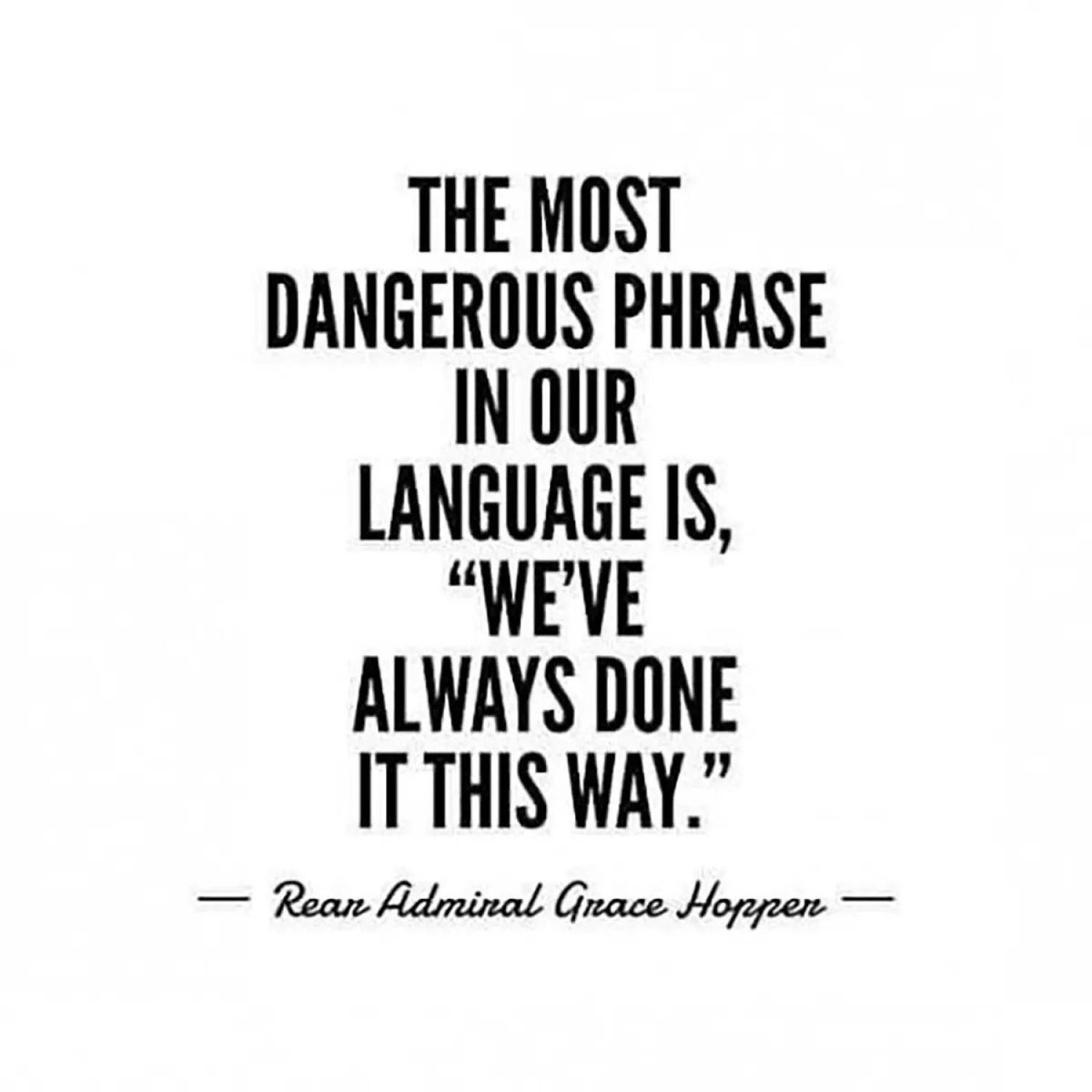 As a Naval officer it's likely that Hopper's quote was motivated in part by the frustrations of working within a military bureaucracy resistant to any change. But as a programmer and Naval strategist she understood that information wasn't of use unless it was shared, turned into intelligence or knowledge, and then further developed from best practice into better practice.