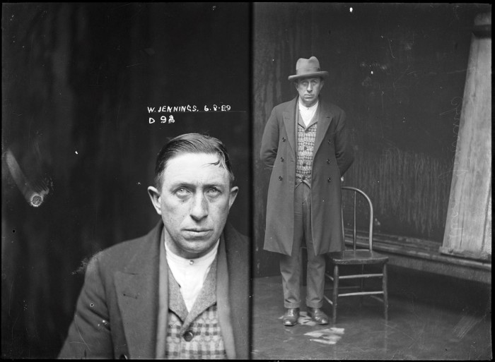 Titled "William Jennings, Special Photograph number D92, 6 August 1929, Central Police Station, Sydney."