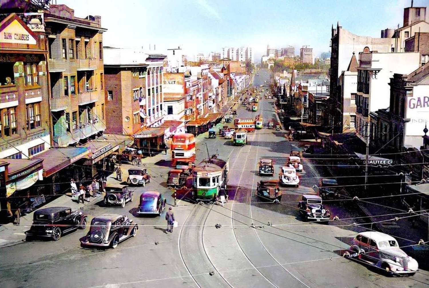 Fantastic colourised photo of William Street, Sydney, 1937.
