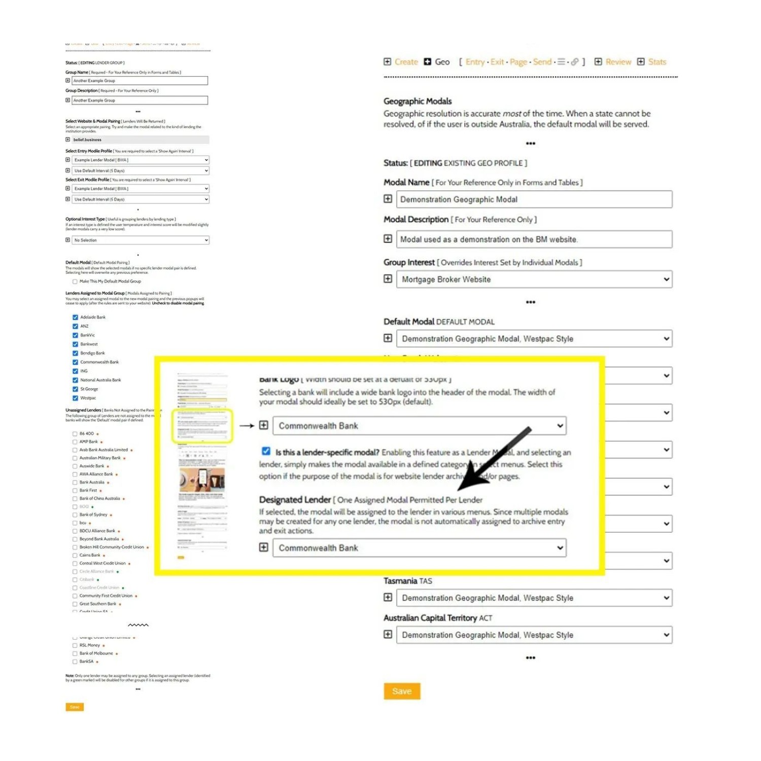 * Geographic Modals: Serves content on the basis of geography (First Home Buyers).
