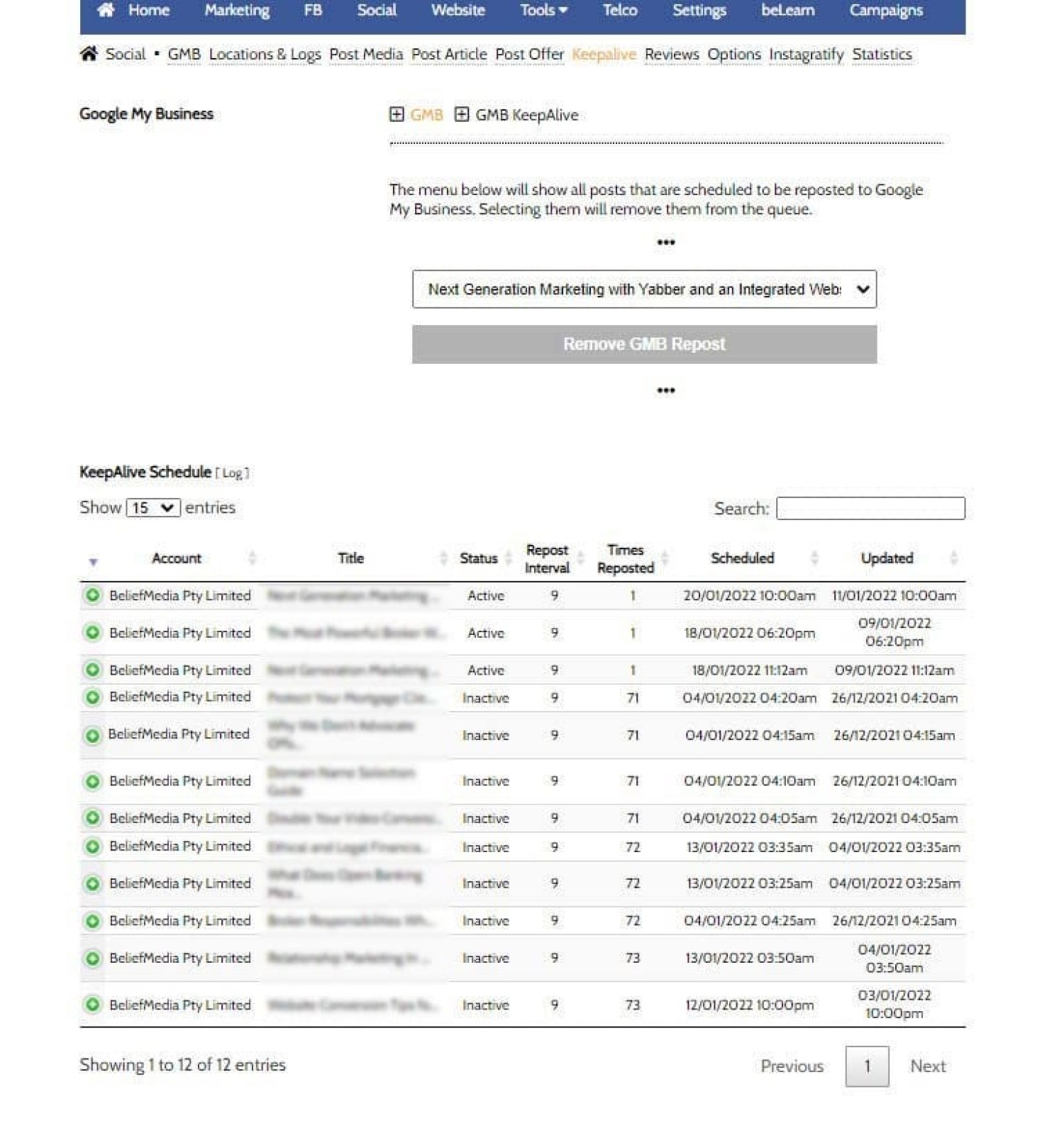 Imagine a world where the company supporting your lead generation didn't provide proprietary and purpose-built tools to support your Google My Business Profile. It's easy to do because it doesn't exist outside of our product! We support the posting of images and articles from Instagratify and via panels within Yabber. The system supports review management (with reviews automated to your website), multiple locations, 'Keep Alive' functionality for your GMB posts, and full statistics.