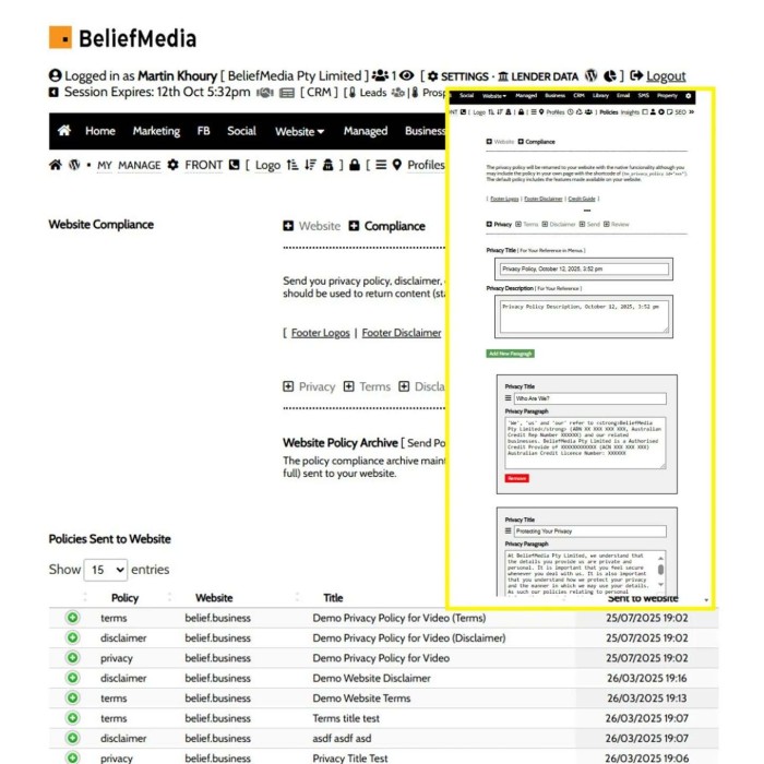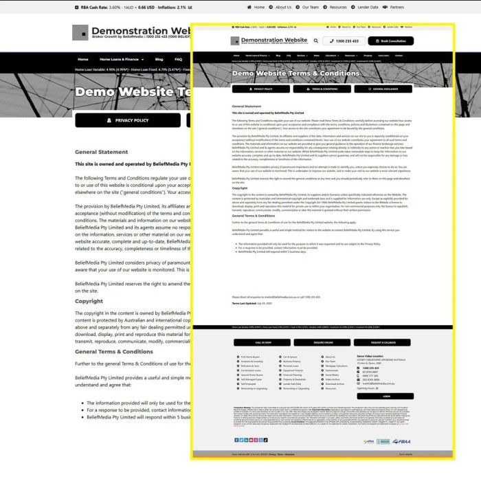 Some of the most boring pages on your website are also the most essential. Your privacy, terms, general disclaimer, and 'every page' footer disclaimer are required on every page (without exception). Modules in Yabber makes the creation and maintenance of these assets a breeze, and the platform records every variation as required for archival compliance purposes.