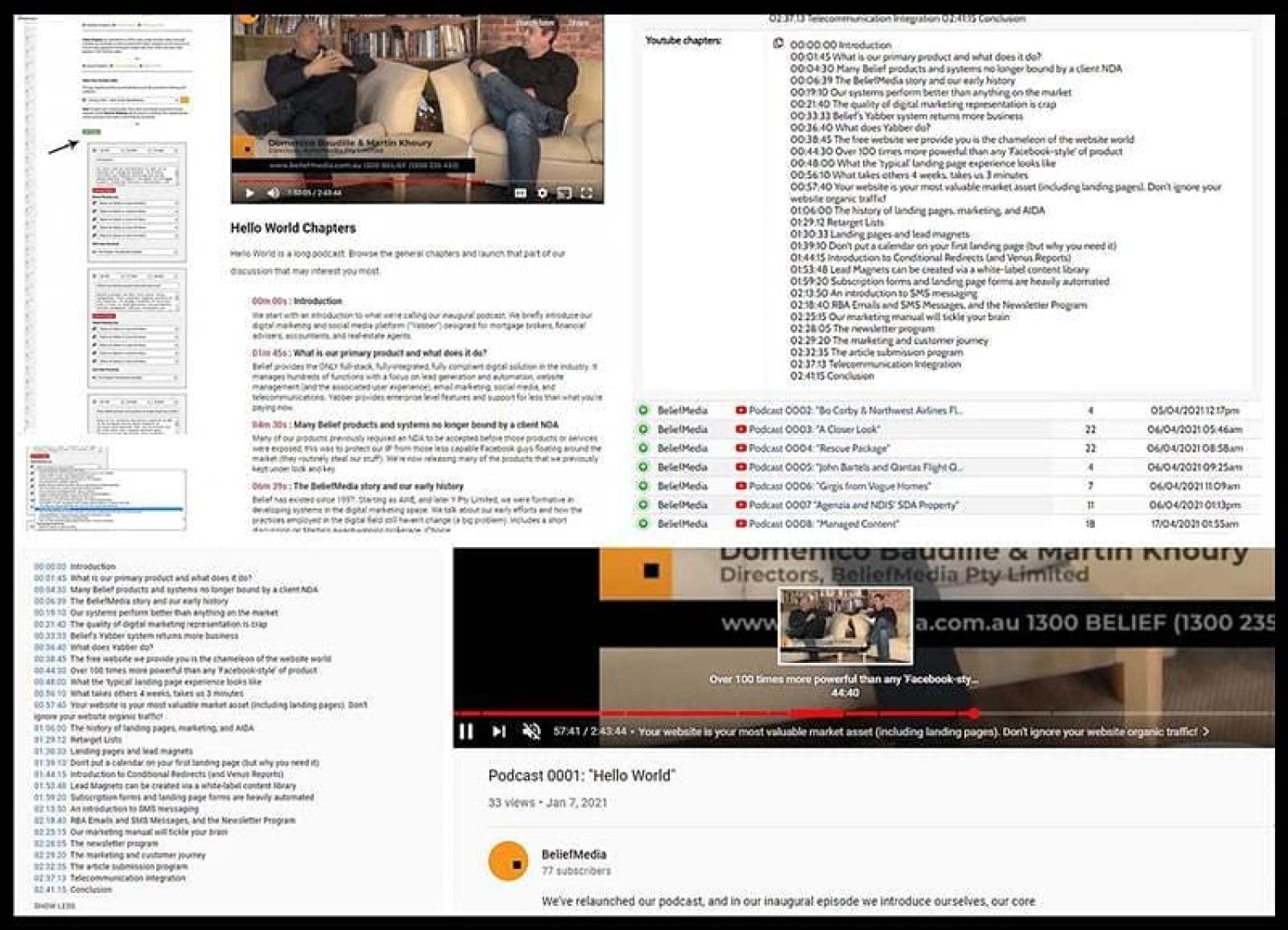 The module to create YouTube chapters in Yabber is brilliant. It will create a fully styled and clickable chapter index for videos on your website, render relevant links, and apply SEO markup. You can now copy the index with one click for inclusion in YouTube descriptions so YouTube's own videos will show the in -video chapters (automation is forthcoming).