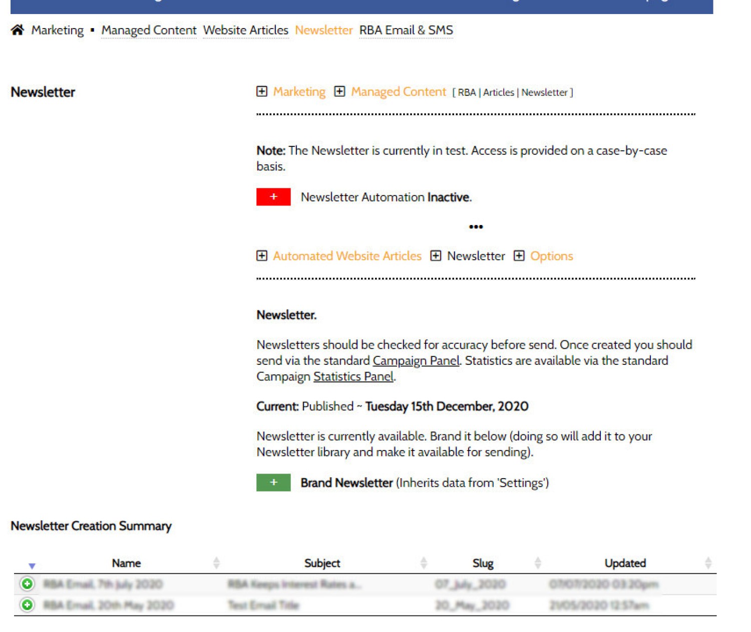 We’ve designed our newsletter system to be super-simple to use. We create the newsletter on schedule and it appears in your Newsletter panel. If automation was selected the newsletter will be sent on schedule. The newsletter is branded with all your company details and logos, and if necessary, and if approved, links in the attached PDF document will link directly to your website (this is something we may revise because not all automated articles are sent to all websites).